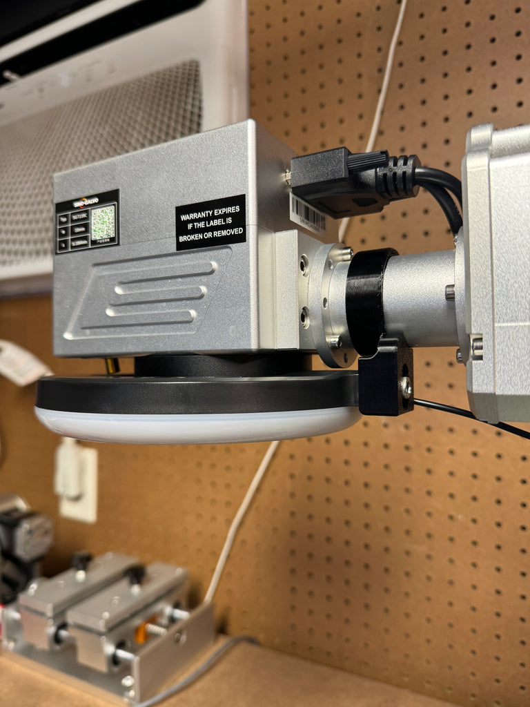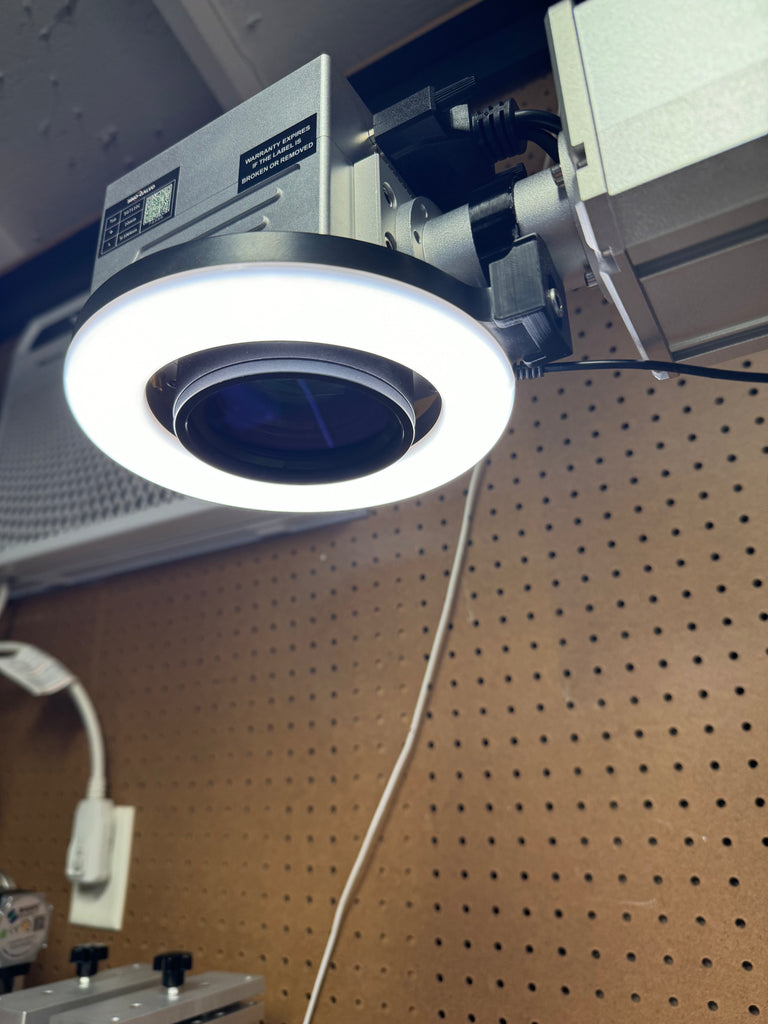 Transform your workspace with our 3D printed ring light mount and illuminate your work with ease! Crafted from durable PETG, this mount includes all necessary hardware for installation. Be cautious when attaching the 3D print to the Galvo neck, gently opening the C-clamp to secure it in place. Avoid over-stressing the 3D print to prevent any potential cracks.