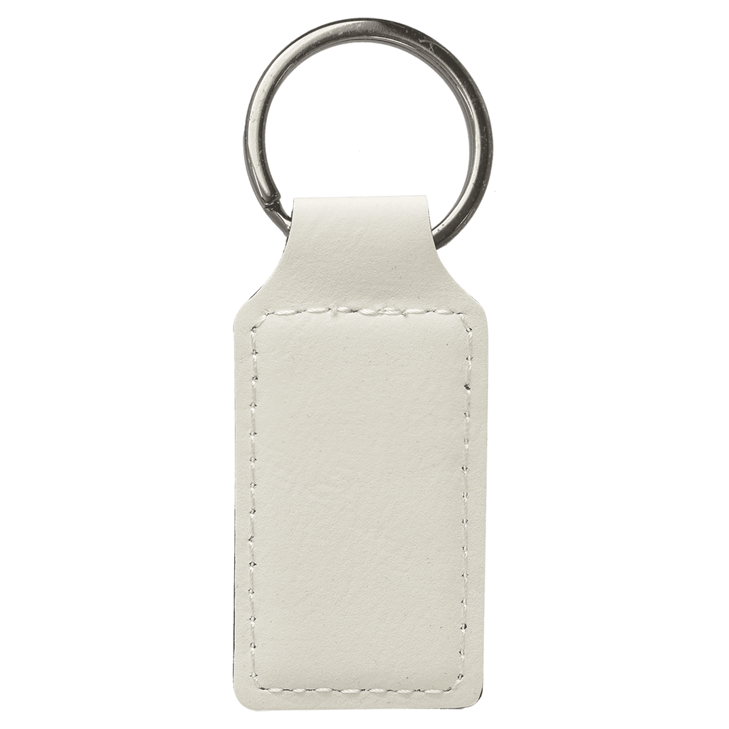 2 3/4" x 1 1/4" White Laserable Leatherette Rectangle Keychain