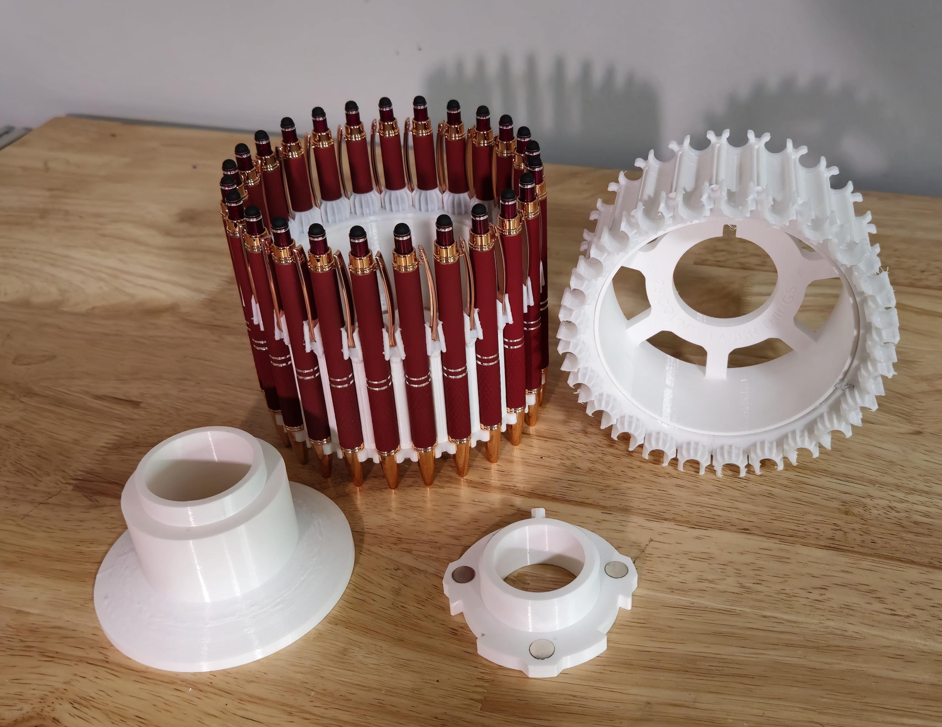 Experience the convenience and efficiency of our Pen jig rotary attachment, equipped with a magnetic center hub for effortless release and swift switch to another jig. With a capacity of 25 pens, this jig is the ultimate solution for streamlining production and maximizing profits.