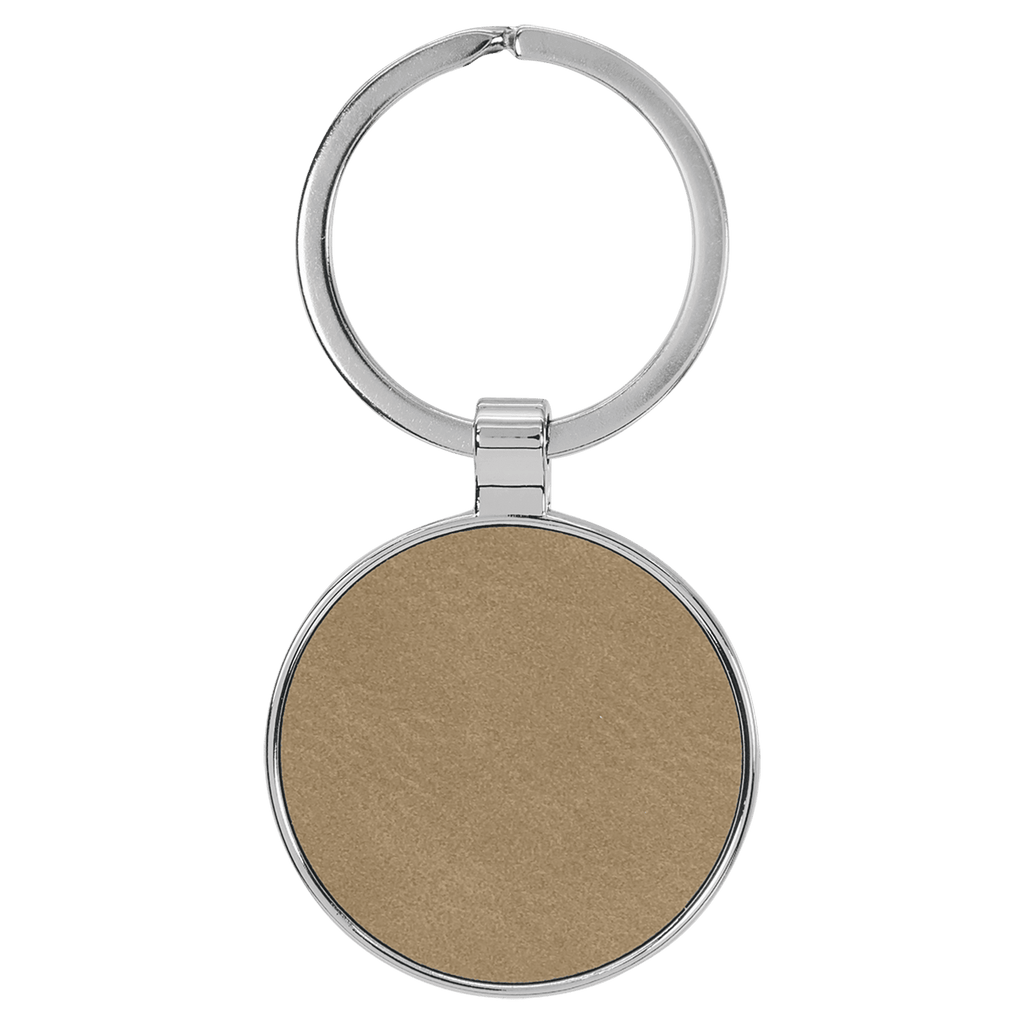 1 1/2" Laserable Leatherette/Metal Round Keychain